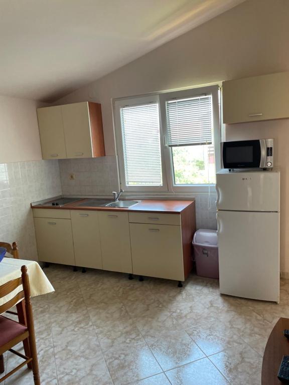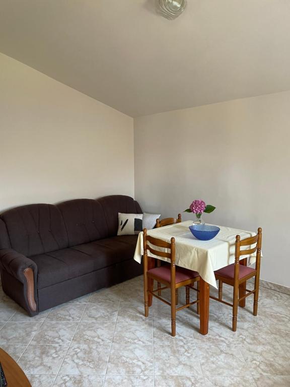 Private house apartment, 5-minute walk to the sea. The house has a lovely yard, with everything you need for a comfortable stay and a parking spot for your car. There's also a swing set for the kids. But what we enjoyed the most were the hosts—a married couple, Miranda and Slavko. They are incredibly hospitable, kind, and pleasant people. They even treated us to fresh fruit from their own garden a few times. The sea is only a 5-minute walk away, with a sandy, shallow bottom that's perfect for children.