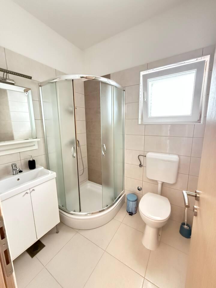 Dieses 50 m² große Apartment bietet Platz für bis zu 4 Personen und eignet sich für Paare, Familien oder kleine Gruppen. Es besteht aus einem Schlafzimmer mit Doppelbett, einem Wohnbereich mit Schlafsofa sowie einem eigenen Badezimmer mit Dusche.