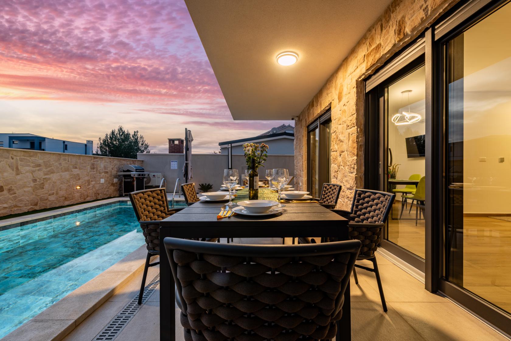 Die Villa Royal Sabunike I ist eine neu gebaute, modern und luxuriös gestaltete Villa, die für einen erstklassigen Urlaub konzipiert wurde. Sie befindet sich im ruhigen Ort Sabunike in Privlaka, der für seine langen Sandstrände und das klare, flache Meer bekannt ist. Die Villa liegt nur 200 m vom Meer und Sandstrand entfernt und bietet Platz für bis zu 6 Personen, ideal für einen entspannten Urlaub am Meer.