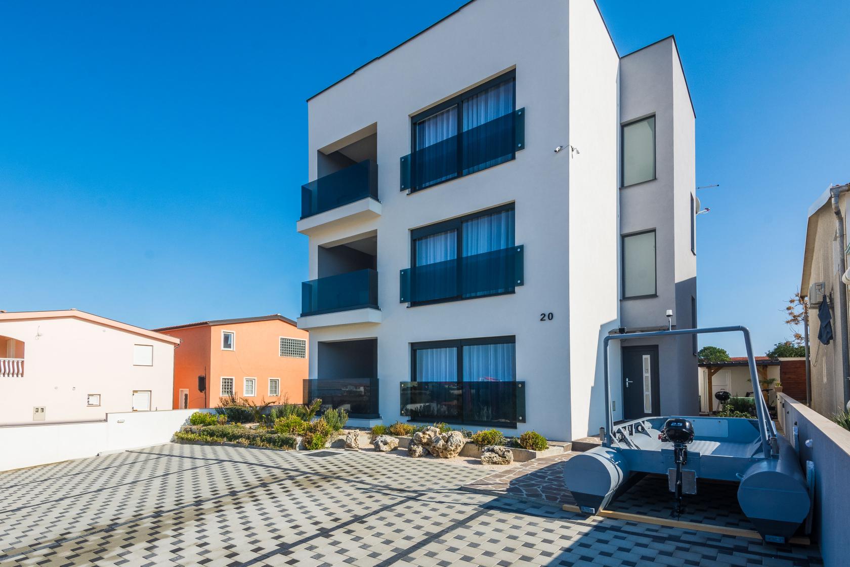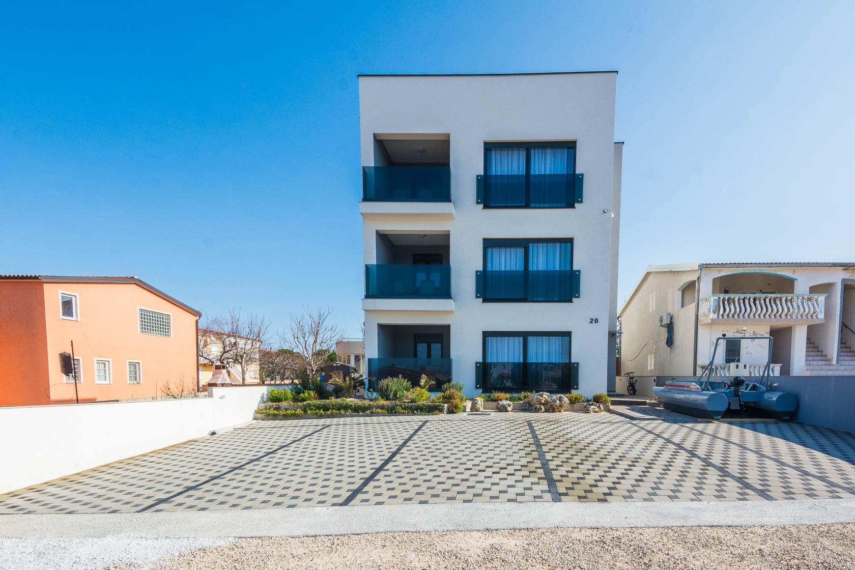 The newly renovated apartment is located in a new, modern building with three apartments on the island of Vir, which is about a twenty-minute drive from the larger city of Zadar and a ten-minute drive from the picturesque town of Nin. The apartment is located on the 1st floor and has a panoramic view of the surroundings and the sea, and a beautiful sandy beach stretches nearby, where guests can go after waking up to refresh themselves.
