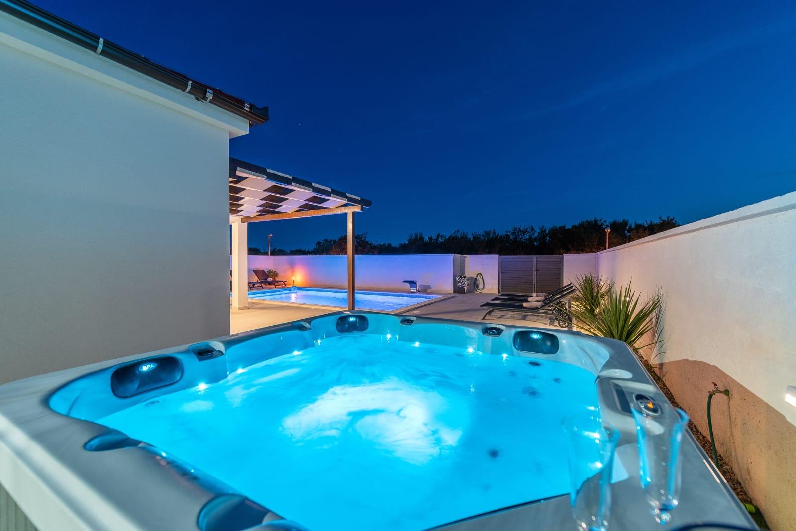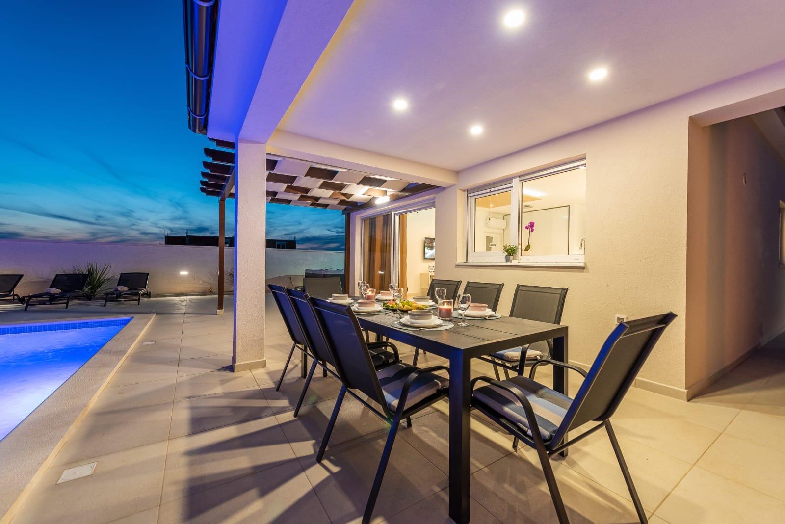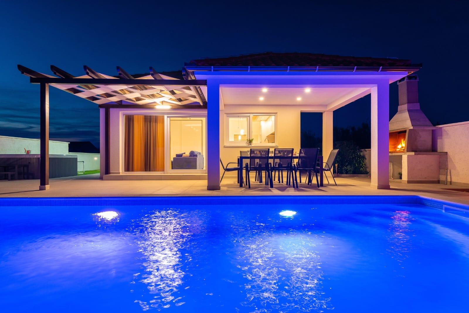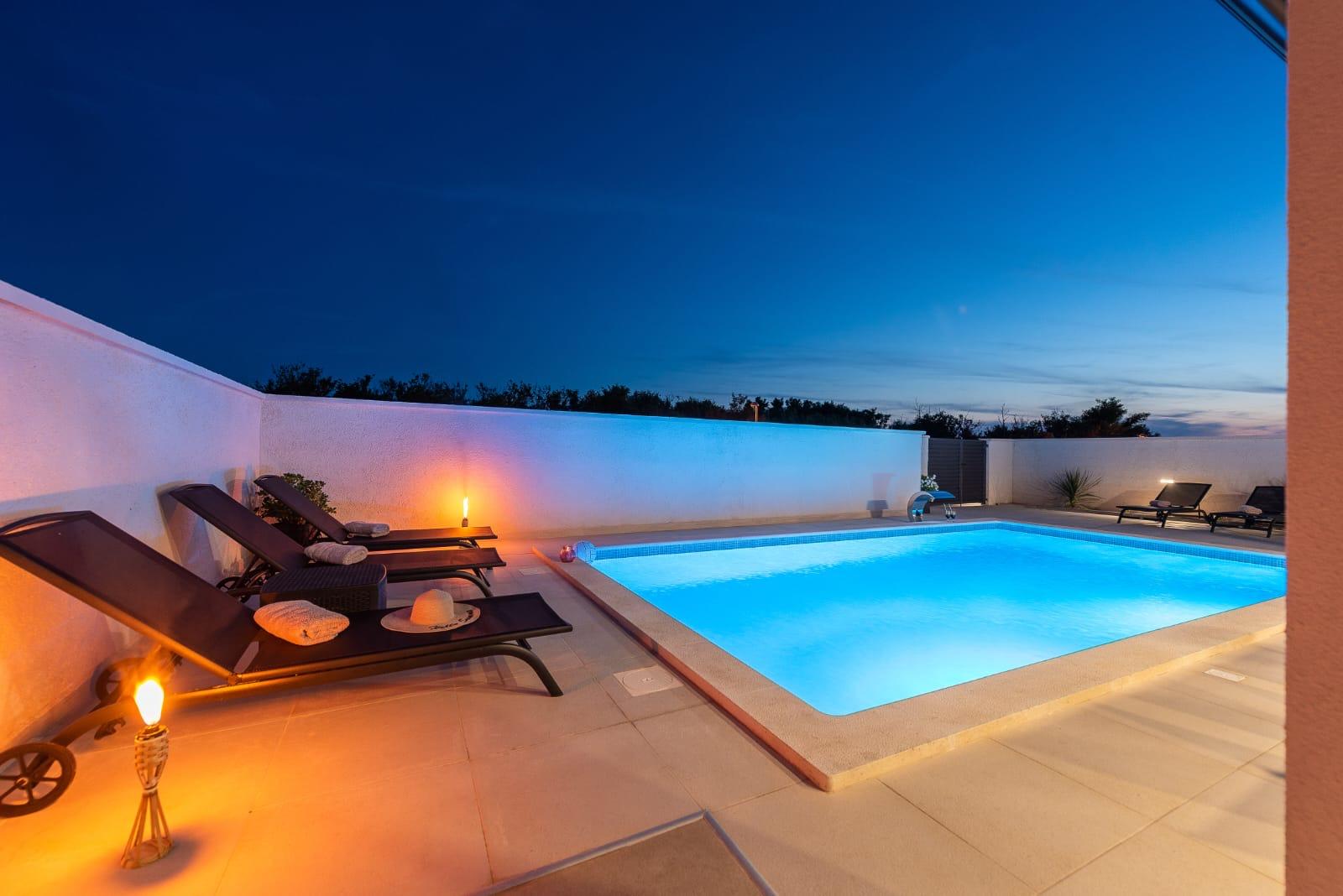 An elegant villa with a private pool is located in Privlaka, a picturesque village 13 km from the beautiful city of Zadar, and is the perfect choice for a quiet vacation, as well as for active exploration of places like Nin, Zadar or Vir. The house with an elegant interior decoration is located in a quiet location and is surrounded by greenery, and everything is easily accessible by car.