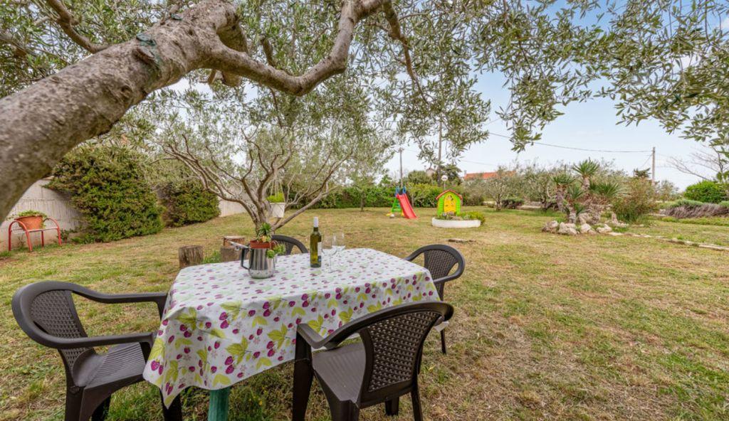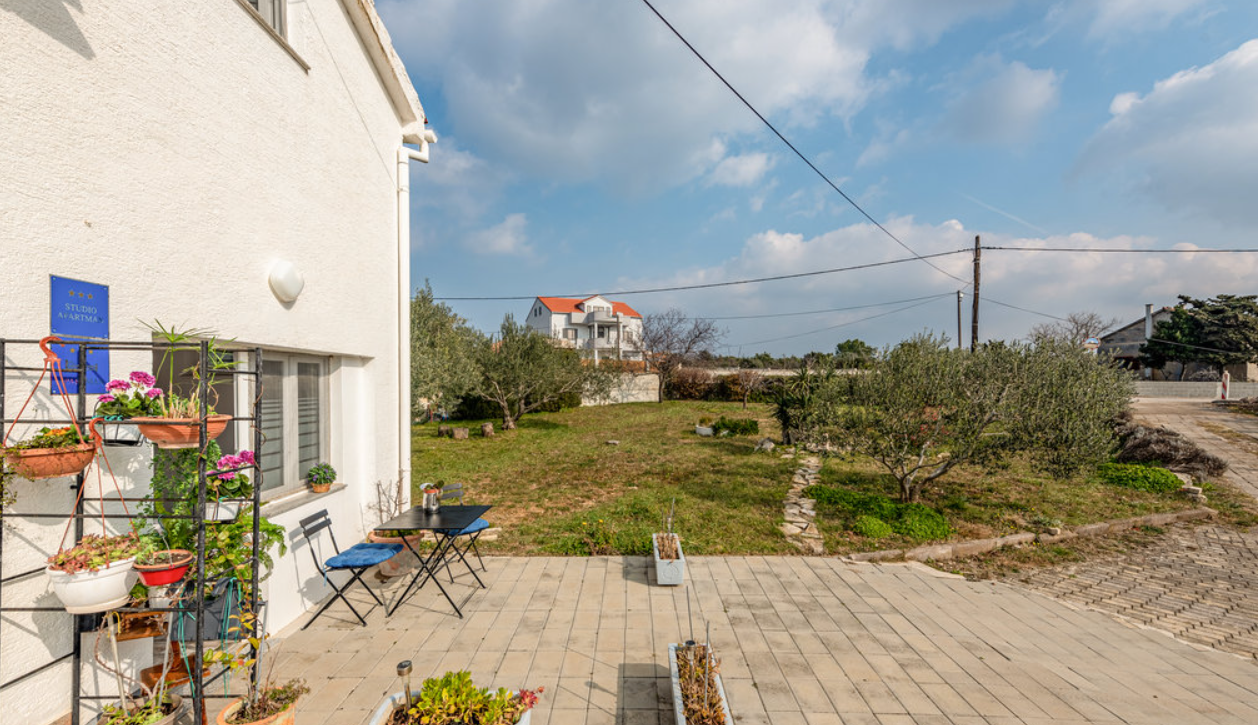 Prostrano i ograđeno dvorište nudi brojne sadržaje za sve uzraste – dječje igralište smješteno u hladu, prostor za roštilj i vanjski stol sa stolicama za uživanje u druženjima i obrocima na svježem zraku. Osiguran je i besplatan parking unutar objekta. Apartman se nalazi u mirnom dijelu mjesta, a najbliža pješčana plaža u Ninu udaljena je 1.5 km, što ga čini izvrsnom bazom za istraživanje okolice i uživanje u suncu i moru.