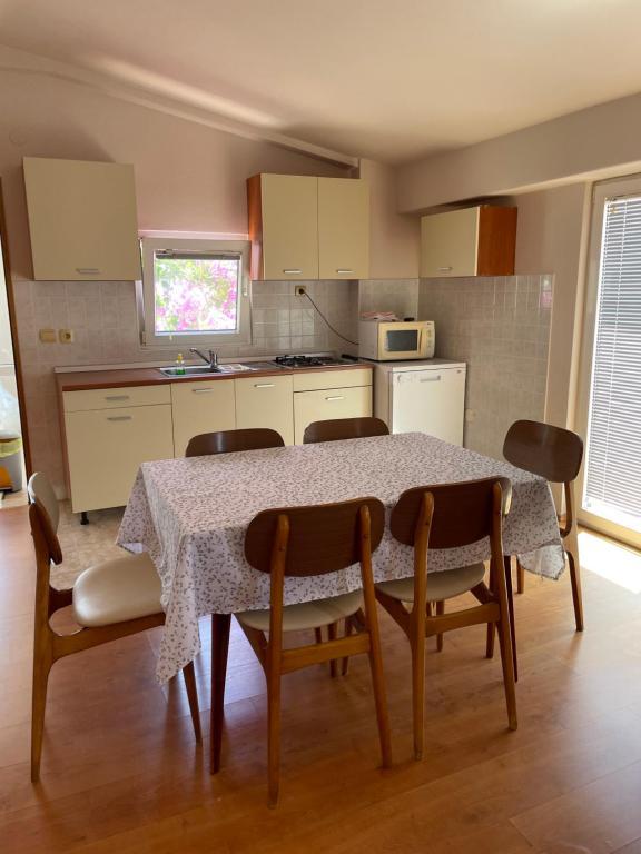 Apartman ima opremljenu kuhinju, blagovaonicu, kupaonicu s tušem i prostranu terasu s vanjskim namještajem – savršeno mjesto za uživanje u jutarnjoj kavi ili večernjem opuštanju. Uživajte u udobnosti i funkcionalnosti ovog apartmana tijekom vašeg boravka u Privlaci.