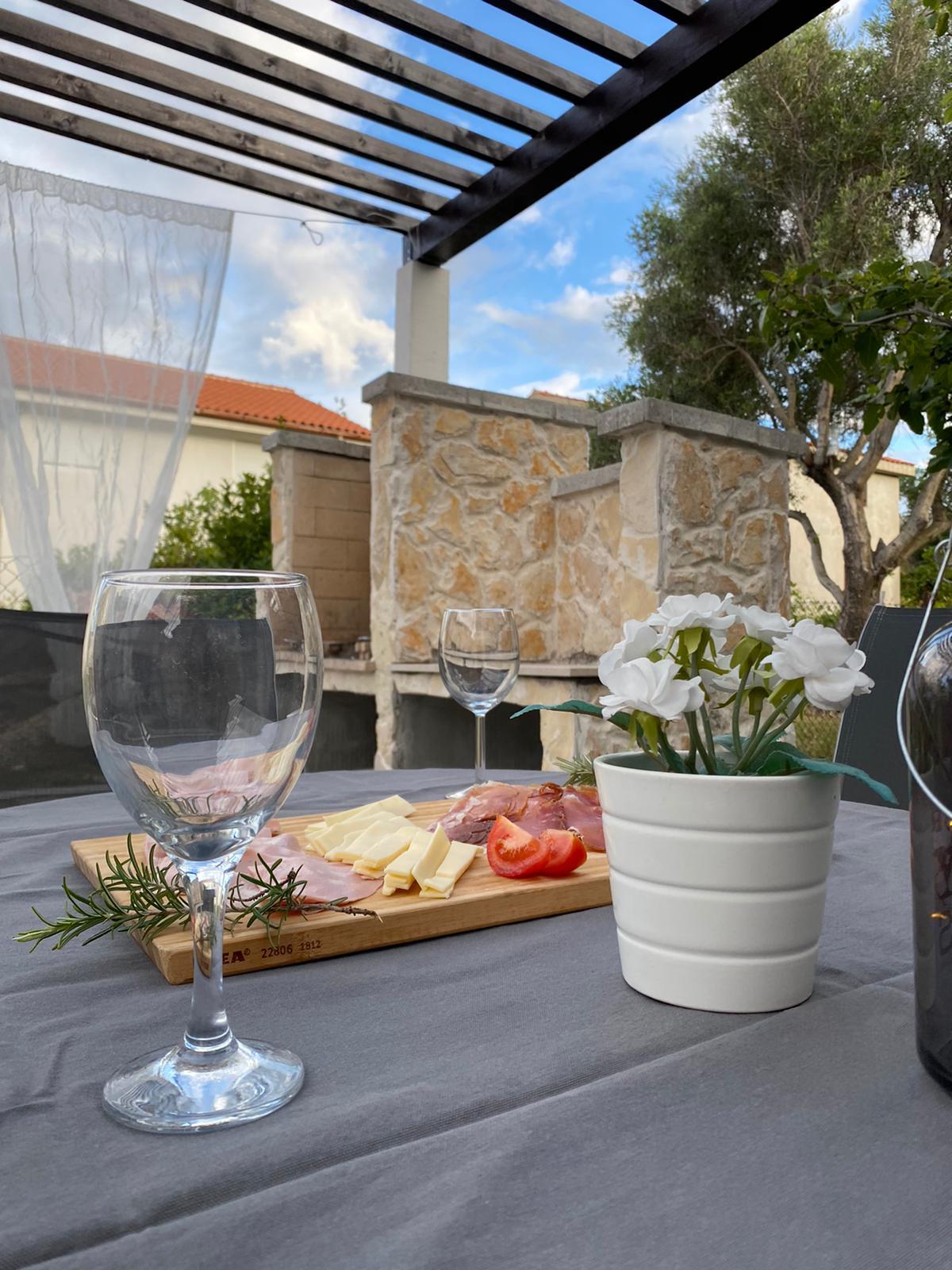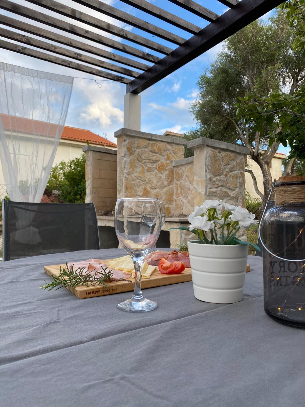 Poseban ugođaj pruža prostrana terasa, opremljena velikim stolom sa stolicama, ležaljkama i udobnim vanjskim namještajem – idealna za jutarnju kavu ili opuštanje uz knjigu. Gostima je na raspolaganju i roštilj, savršen za ugodna večernja druženja na svježem zraku. Na upit je moguće organizirati izlete ili vožnju brodicom po kristalno čistom moru.