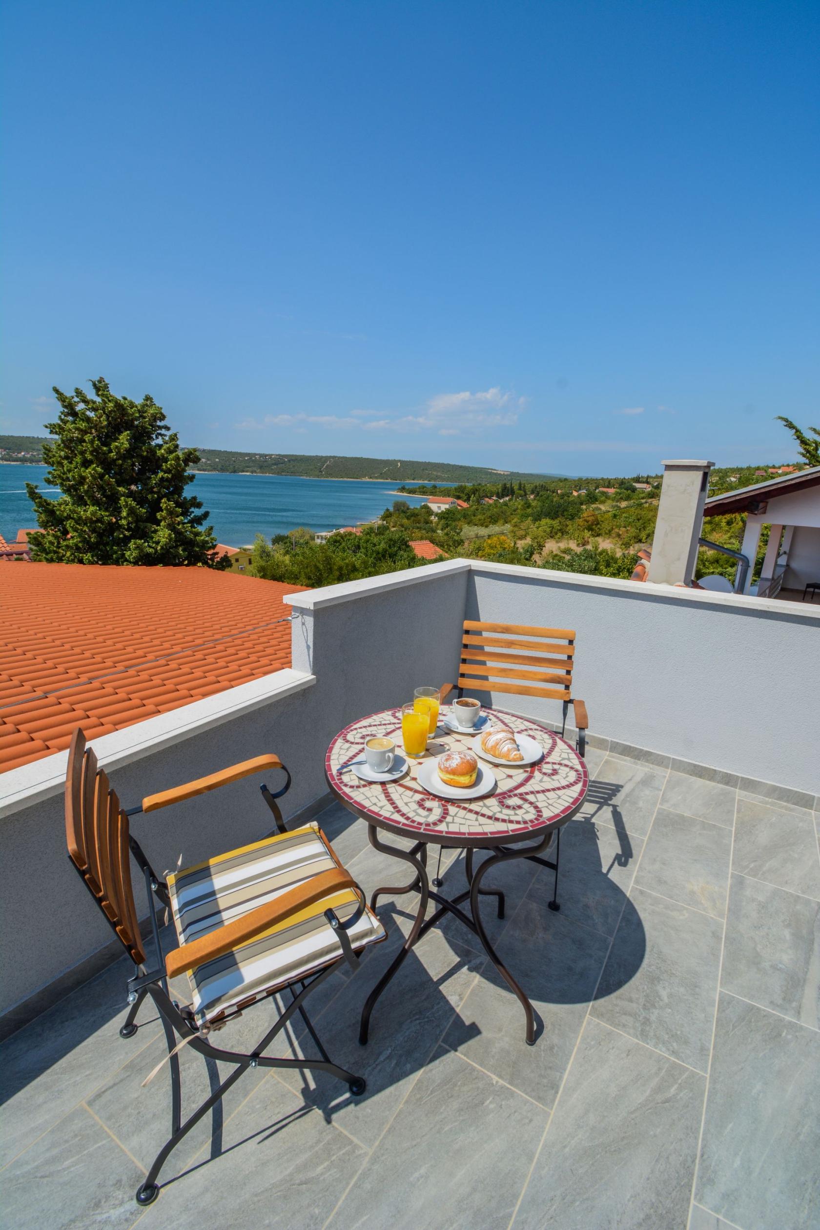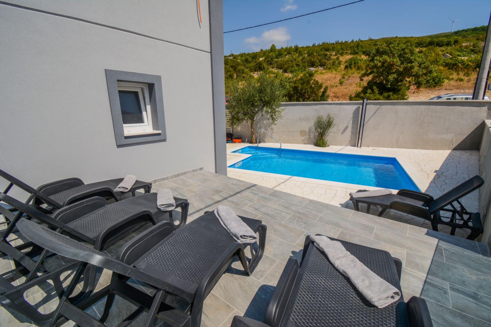 Cijela vila je klimatizirana i ima izvrsnu wi-fi mrežu te se prostire na tri spavaće sobe, tri moderne kupaonice, dnevni boravak, otvorenu blagovaonicu, kupaonicu i potpuno opremljenu kuhinju. Može primiti do osam osoba, a za parking se gosti ne moraju brinuti – ispred vile imaju privatan parking. Gostima će biti najdraža terasa koja sadrži veliki stol s klupama i kamin na kojemu mogu pripremati dalmatinske specijalitete. S terase se može direktno doći na obližnju plažu i uskočiti u kristalno, čisto more što je poseban doživljaj, pogotovo nakon uživanja u šalici kave na sunčanom balkonu. S balkona koji se nalazi na prvom katu gosti